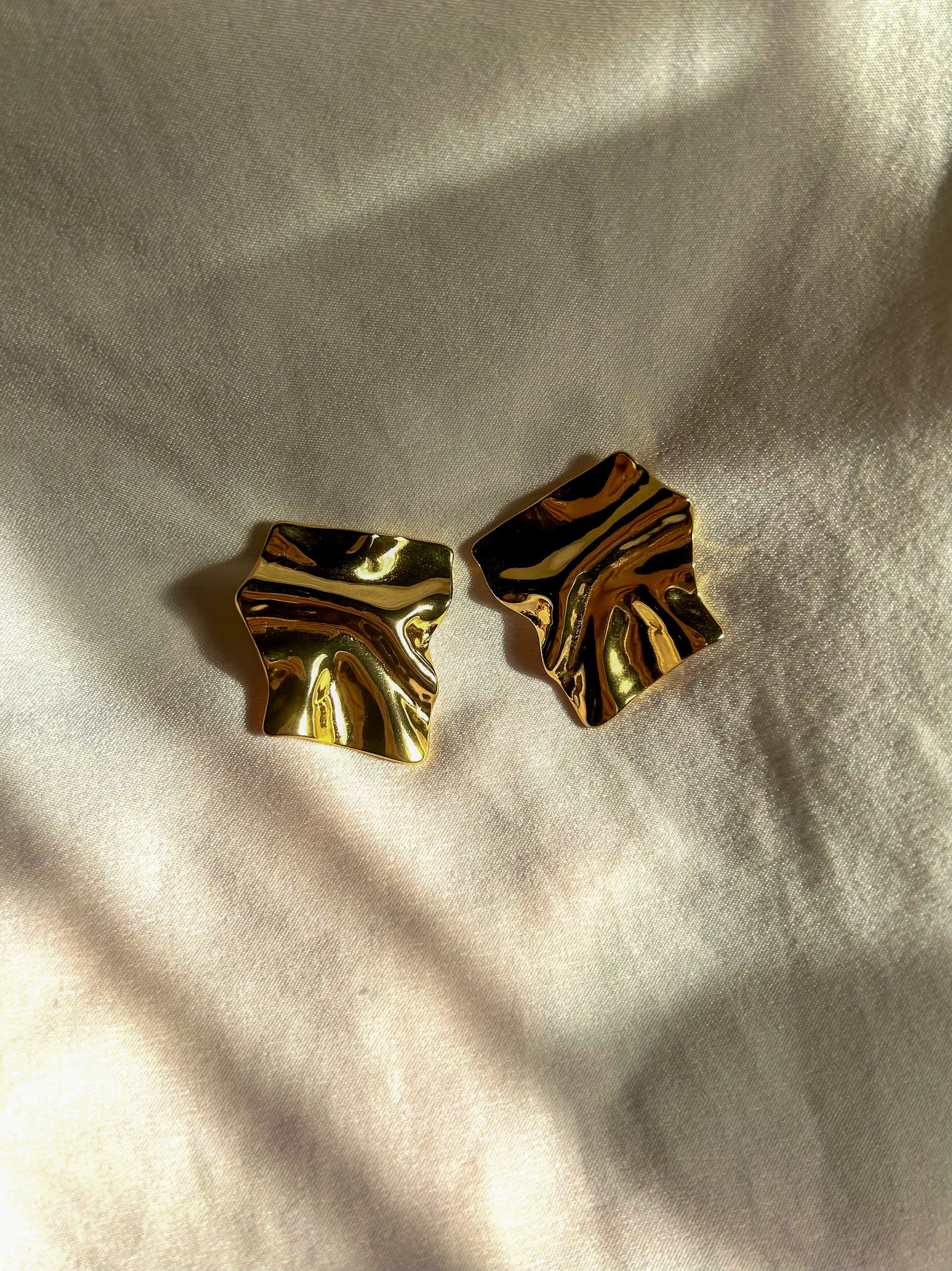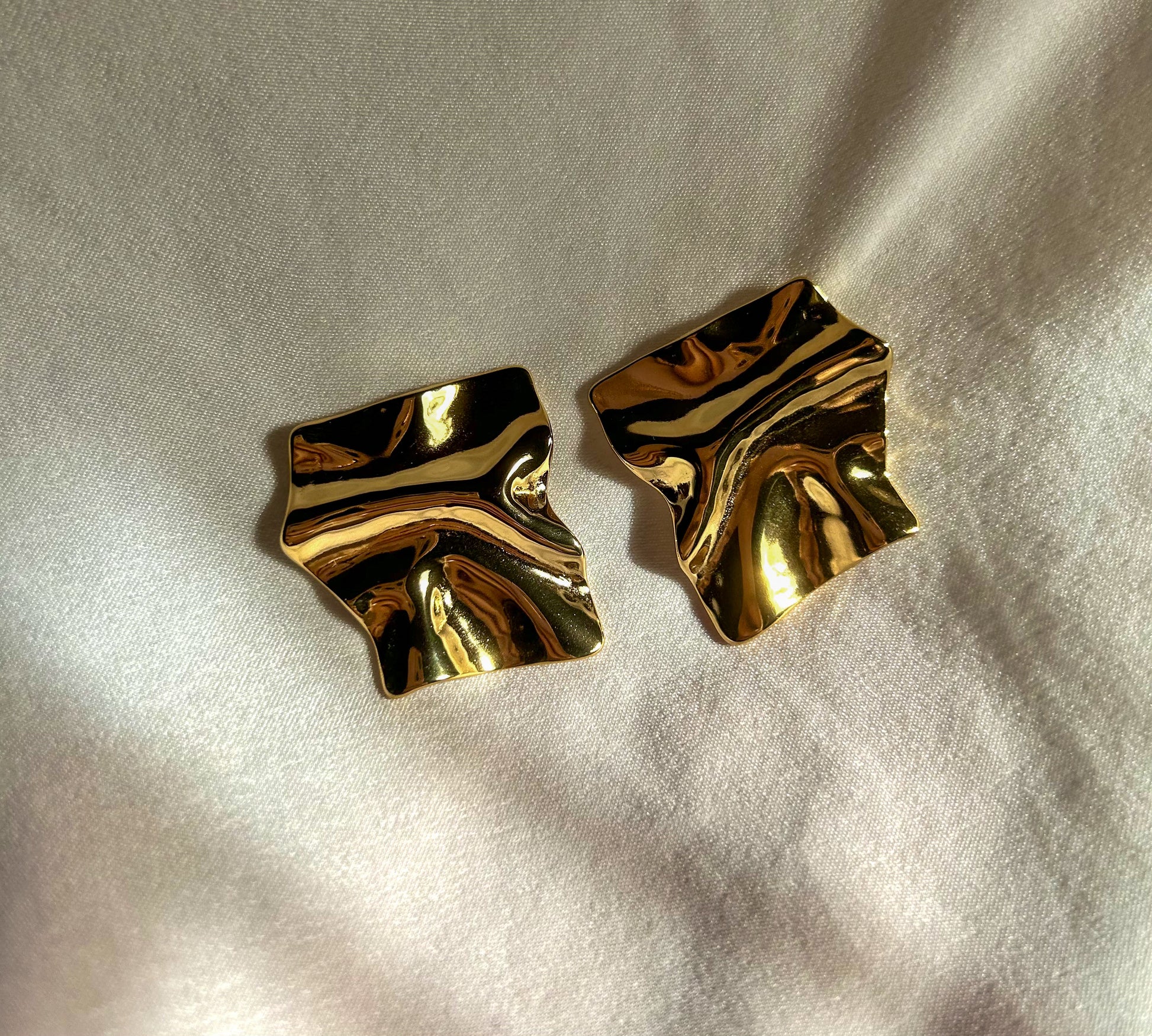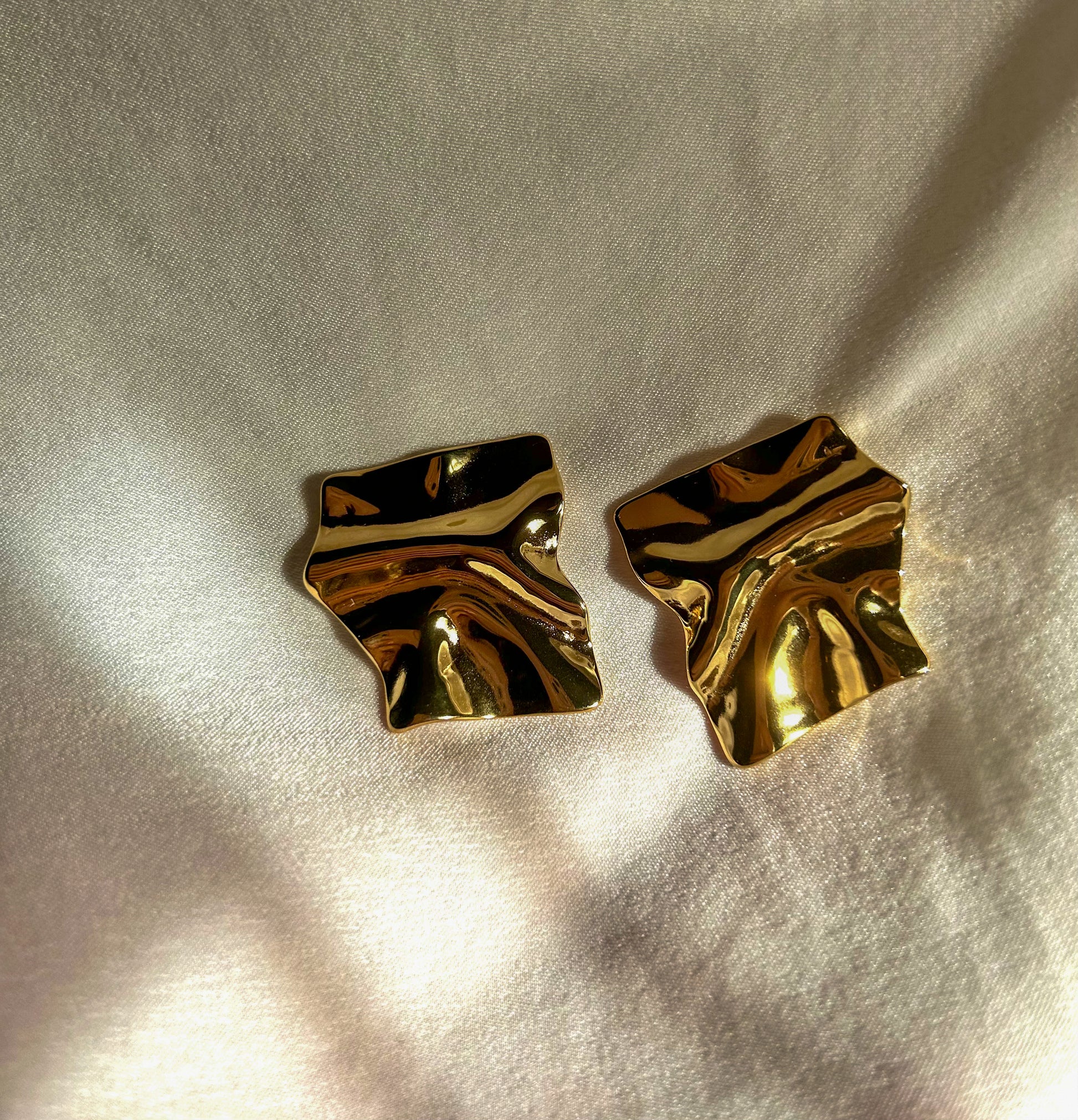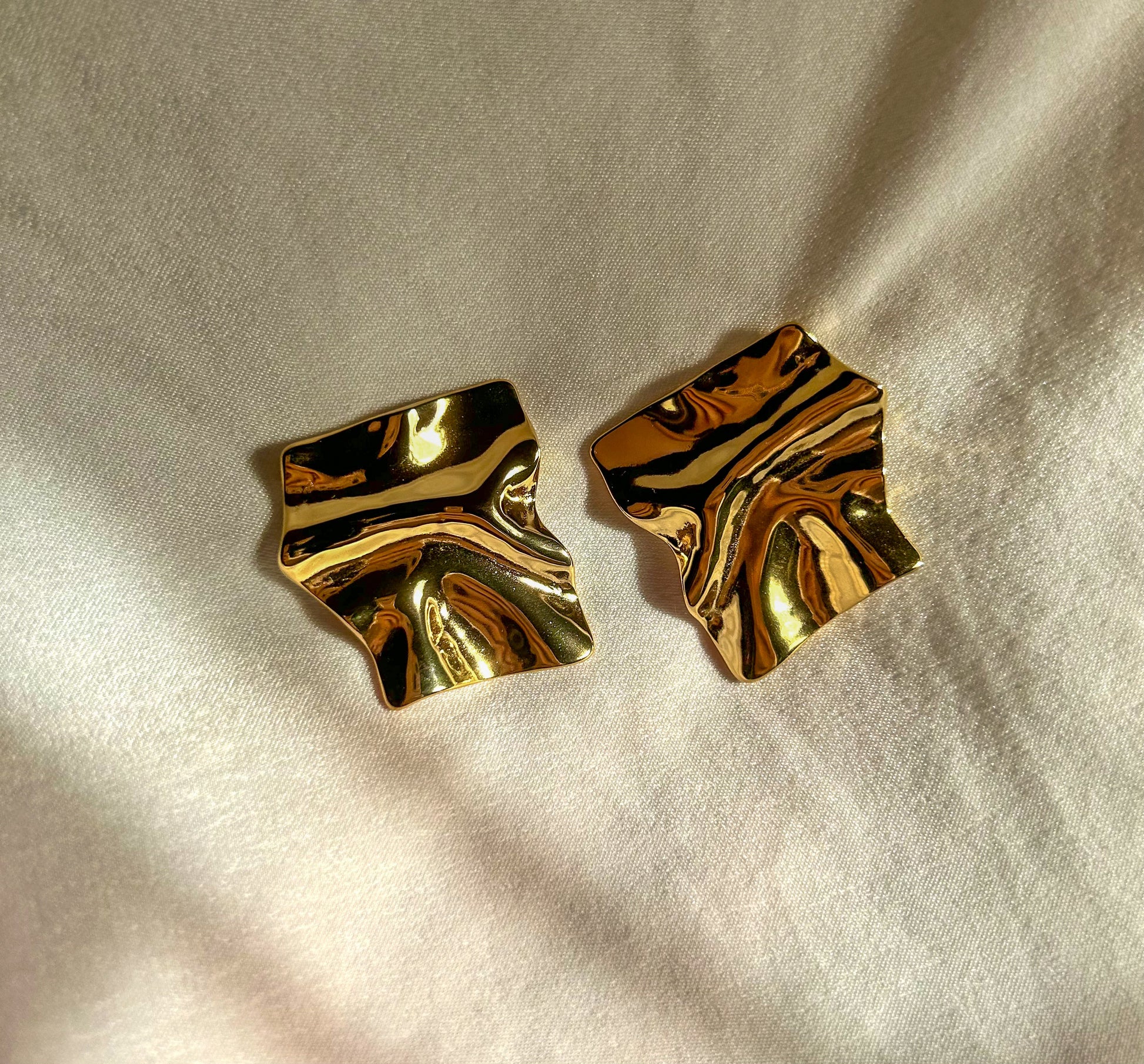 Stainless Steel Earrings composed of a wrinkled square effect.
