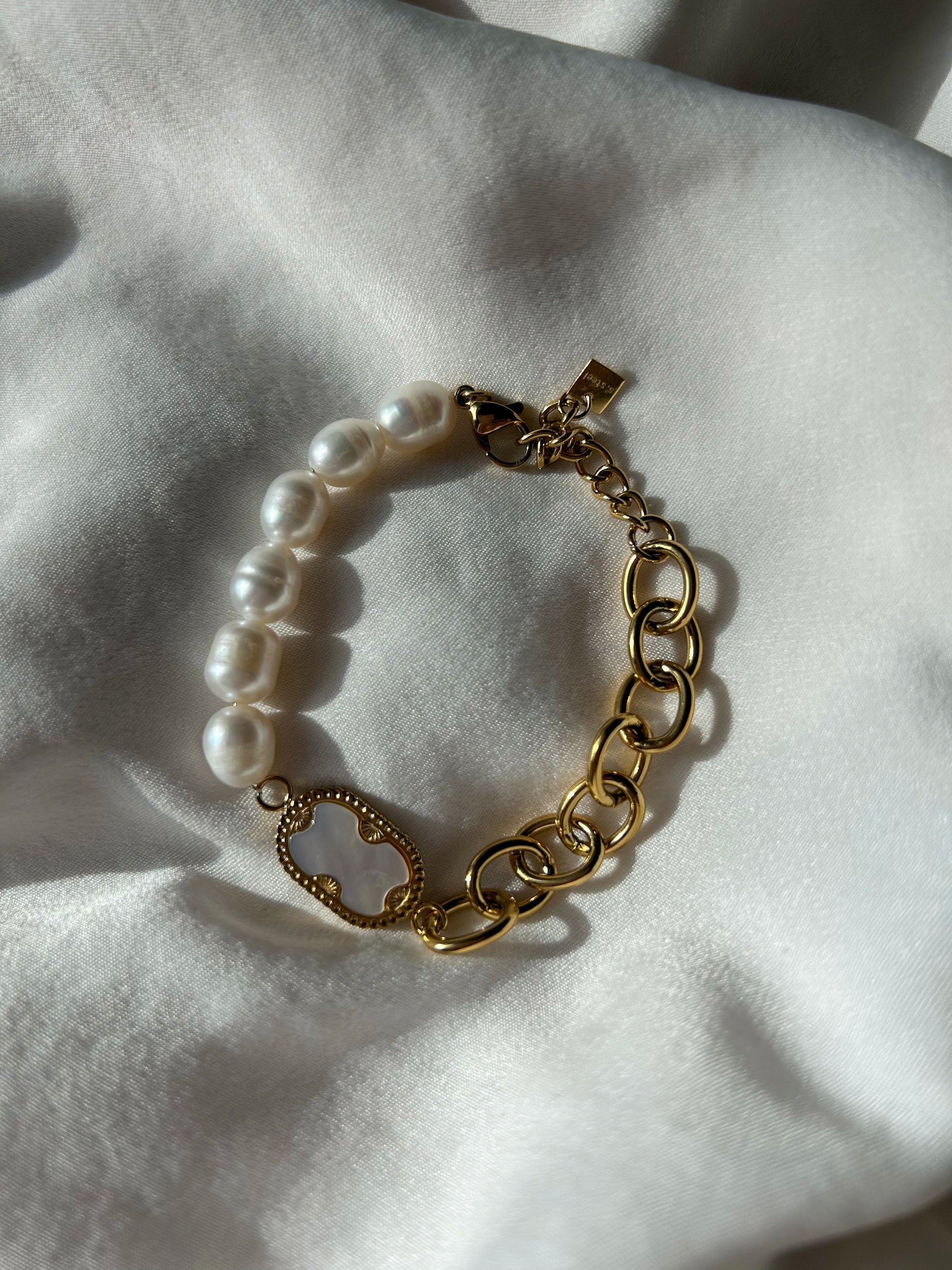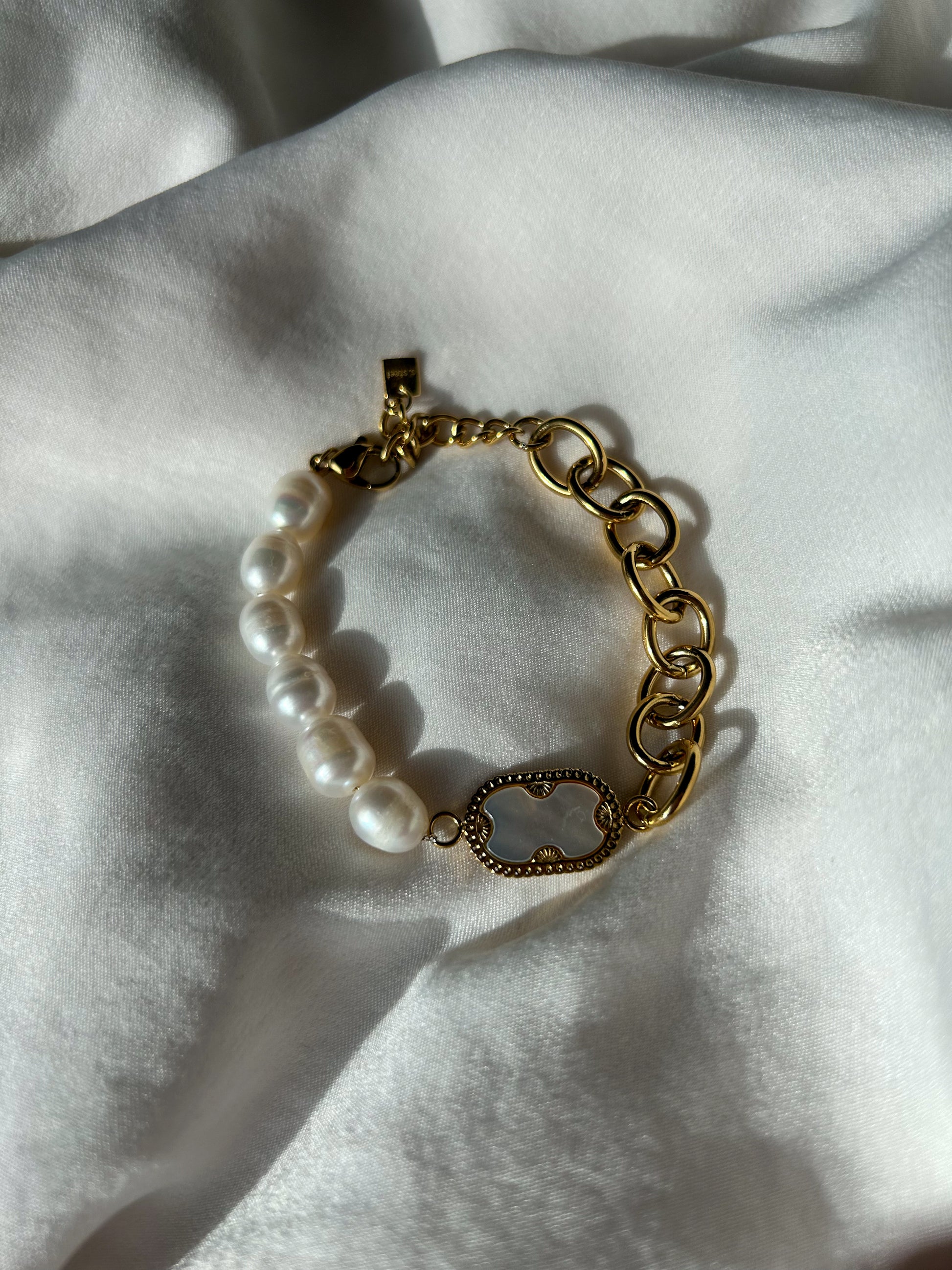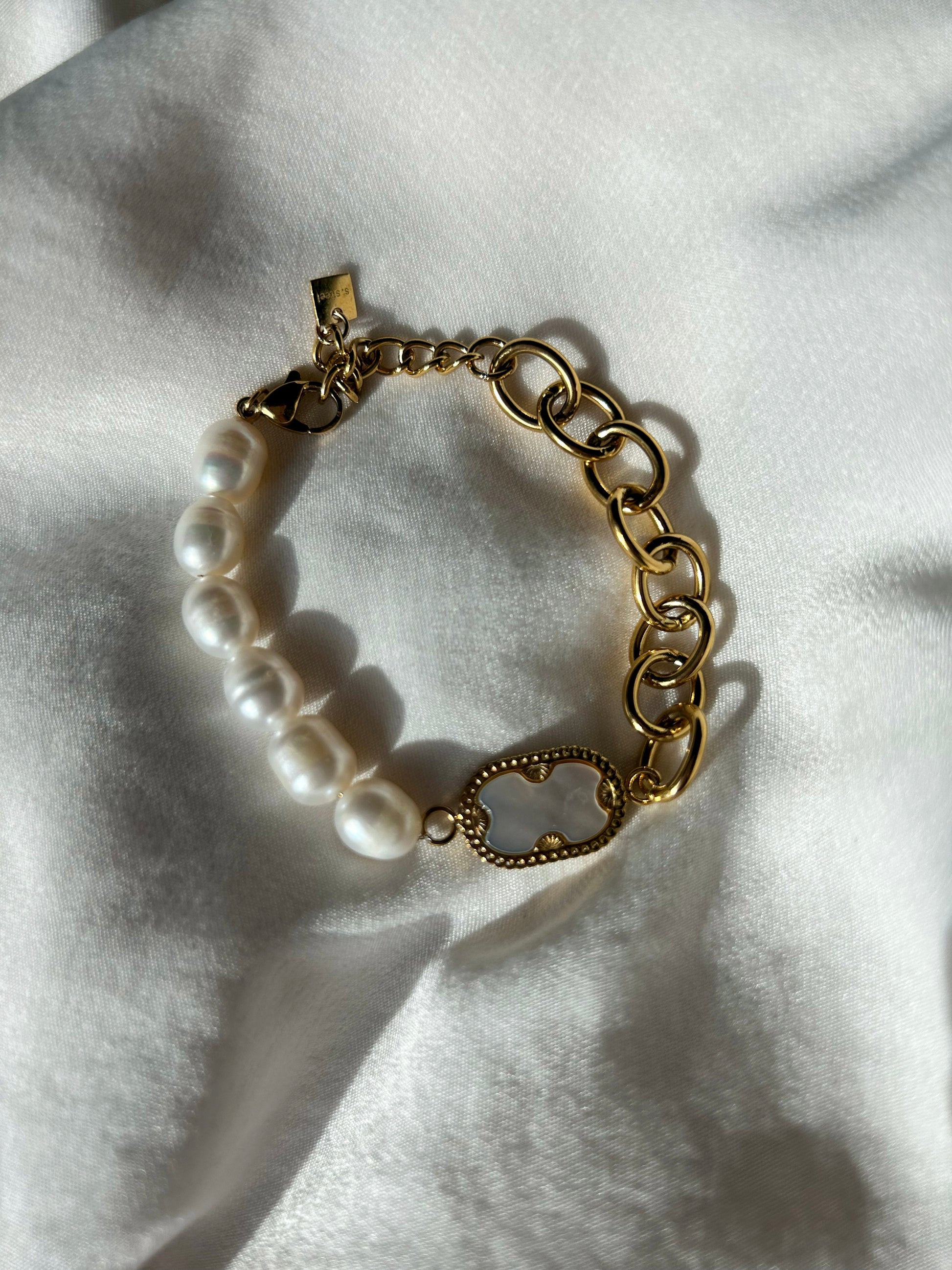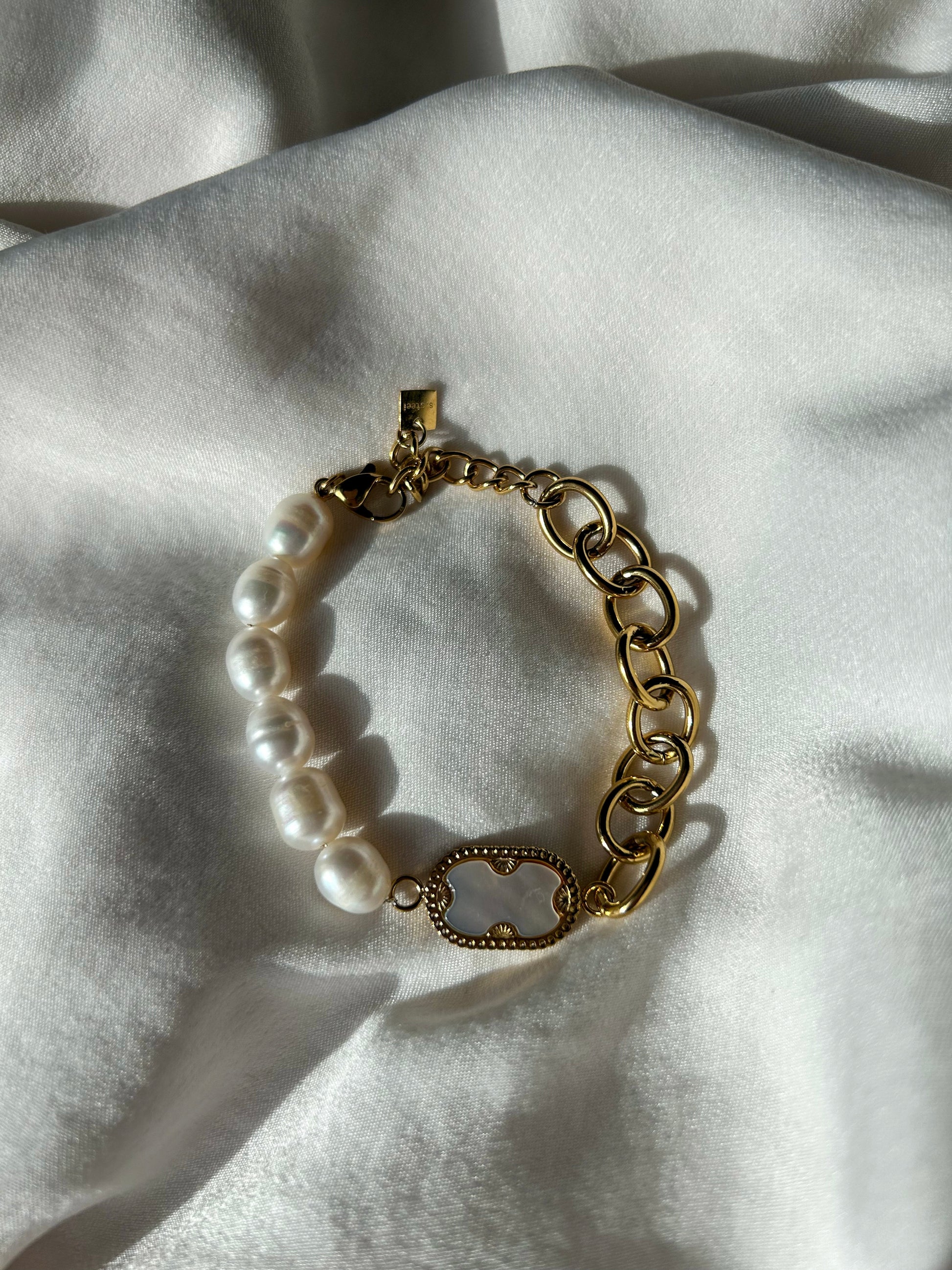 Golden Ambroisine Bracelet With White Mother of Pearl Stone